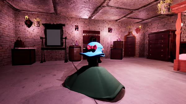 Another thing I added is a maze in the room on the upper level! I wanted to make it so when players were in the maze, their goal was not only to exit, but also collect ALL the books hidden in different nooks of the maze. That way, they can find out all the important story parts! Since I figured out how to get players to open dialogue box from picking up items, I wanted to apply the same mechanic to looking at paintings, but haven't finished making the 3D mesh for paintings yet. I really want to hang paintings all over the castle that players can walk up to for little snippets of description like "A painting of a happy family... looks like a childhood picture of Yverne", to give more elements of mystery behind the backstory! These are ALL things I'll throw in after the playtests since I don't have enough time to add the rest of the story in 2 days....